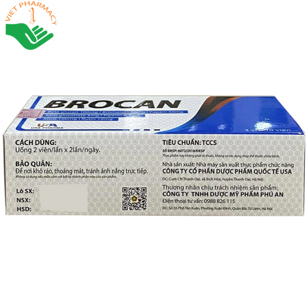 Viên uống Brocan là giải pháp hỗ trợ sức khỏe hệ tuần hoàn, đặc biệt dành cho những người gặp các vấn đề về giãn tĩnh mạch, sưng phù chân tay hoặc cảm giác nặng mỏi chi dưới. Sản phẩm kết hợp các thành phần thảo dược và dưỡng chất giúp tăng cường độ bền của thành tĩnh mạch, cải thiện lưu thông máu và giảm hiện tượng ứ trệ. Brocan tác động từ bên trong, giúp giảm sưng phù, đau nhức và đem lại cảm giác nhẹ nhàng, thoải mái cho đôi chân.