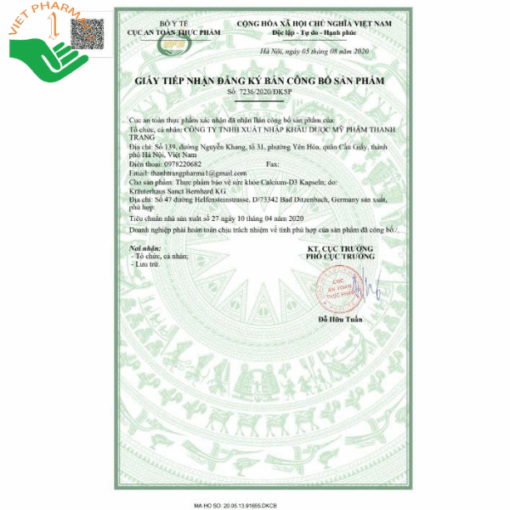 - Số đăng ký sản phẩm: 7236/2020/ĐKSP