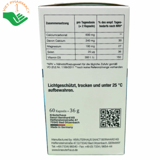 - Sản xuất tại: Kräuterhaus Sanct Bernhard KG, Auf dem Allmendweg 6, D73342 Bad Ditzenbach, Germany (Đức)