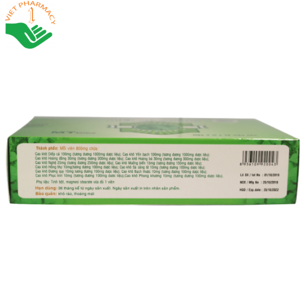 - Cao khô Diếp cá (tương đương 1000mg dược liệu): 100mg
