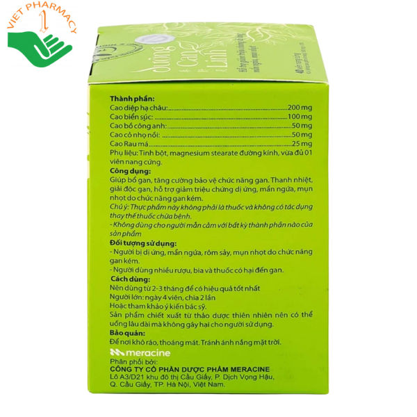 Viên uống Dưỡng Can Linh là sự kết hợp hài hòa giữa các thảo dược thiên nhiên quý hiếm, giúp thanh lọc cơ thể, hỗ trợ giải độc gan và tăng cường chức năng gan một cách toàn diện. Với cơ chế tác động từ bên trong, sản phẩm giúp làm mát gan, hỗ trợ cải thiện các triệu chứng do gan yếu như nóng trong người, nổi mụn, vàng da, mẩn ngứa hay chán ăn, mệt mỏi. Dưỡng Can Linh không chỉ mang lại cảm giác nhẹ nhõm, dễ chịu mà còn góp phần duy trì sự cân bằng nội tiết, giúp da dẻ hồng hào, cơ thể khỏe mạnh và tinh thần sảng khoái hơn mỗi ngày.