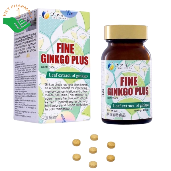 Fine Ginkgo Plus là thực phẩm bảo vệ sức khỏe đến từ Nhật Bản, giúp hỗ trợ tăng cường tuần hoàn máu não, cải thiện trí nhớ và khả năng tập trung. Sản phẩm còn hỗ trợ giảm căng thẳng, mệt mỏi thần kinh và cải thiện chất lượng giấc ngủ. Ngoài ra, Fine Ginkgo Plus có tác dụng chống oxy hóa, hỗ trợ bảo vệ tế bào thần kinh và góp phần hỗ trợ sức khỏe tim mạch. Sản phẩm phù hợp cho người lao động trí óc, làm việc trí óc căng thẳng, thường xuyên phải tập trung hoặc học tập. và người lớn tuổi có dấu hiệu suy giảm trí nhớ.
