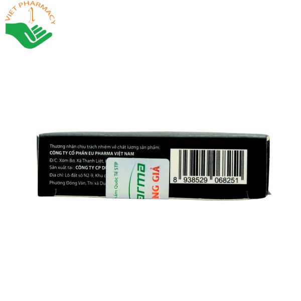 Phụ liệu: magie starate, gelatin, PVP, tale vừa đủ 1 viên.