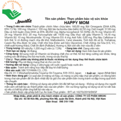 Happy Mom Jpanwell bổ sung một số Vitamin và khoáng chất cho cơ thể, hỗ trợ tăng cường sức khỏe, tăng cường sức đề kháng cho bà mẹ trước, trong và sau thai kỳ.