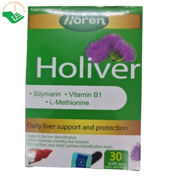 - Thực phẩm bảo vệ sức khỏe Holiver chứa chiết xuất từ cây kế sữa và các vitamin, khoáng chất hỗ trợ cải thiện chức năng gan