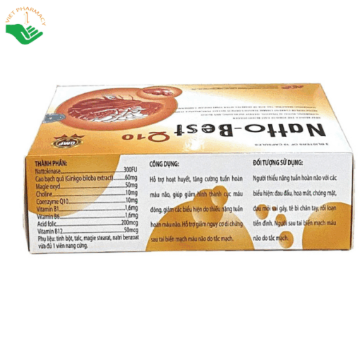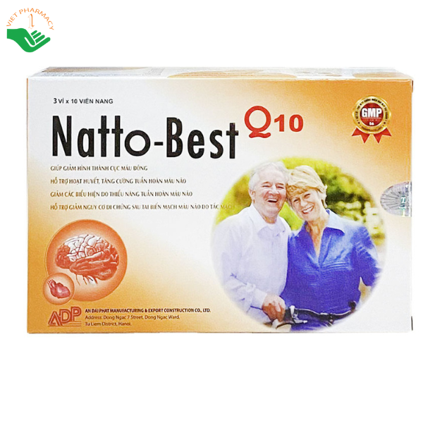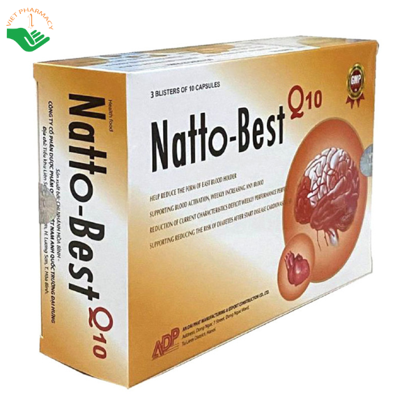 Natto – Best Q10 là thực phẩm bảo vệ sức khỏe được bào chế dưới dạng viên nang cứng, giúp hỗ trợ cải thiện tuần hoàn não, tăng cường lưu thông máu và hỗ trợ làm tan cục máu đông trong lòng mạch. Sản phẩm phù hợp cho trẻ em trên 12 tuổi và người lớn đang gặp các vấn đề về trí nhớ, tuần hoàn não, góp phần hỗ trợ nâng cao sức khỏe não bộ khi sử dụng đúng cách.