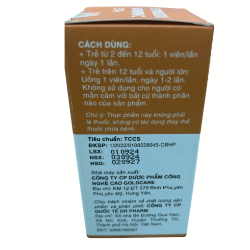- Nhà máy sản xuất: CÔNG TY CP DƯỢC PHẨM CÔNG NGHỆ CAO GOLDCARE