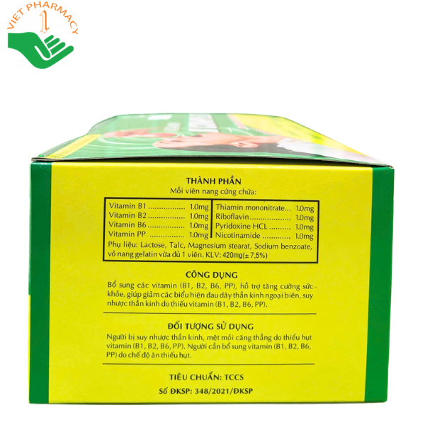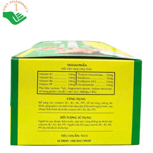 Bổ sung các vitamin (B1, B2, B6, PP), hỗ trợ tăng cường sức khỏe, giúp giảm các biểu hiện đau dây thần kinh ngoại biên, suy nhược thần kinh do thiếu vitamin (B1, B2, B6, PP).