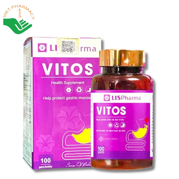 Viên uống Vitos là thực phẩm bảo vệ sức khỏe hỗ trợ cải thiện tình trạng trào ngược, viêm loét và các triệu chứng đau dạ dày. Sản phẩm được bào chế từ thảo dược quý theo y học cổ truyền, kết hợp công nghệ nano hiện đại đạt chuẩn GMP-WHO, giúp dưỡng chất hấp thu tốt hơn. Vitos hỗ trợ cải thiện dạ dày theo hướng chậm nhưng bền vững, phù hợp sử dụng lâu dài. Dạng viên hoàn nhỏ gọn, dễ uống, mùi thảo dược nhẹ, không gây khó chịu khi sử dụng. Sản phẩm được nhiều người dùng và chuyên gia tin tưởng lựa chọn trong việc chăm sóc sức khỏe dạ dày.