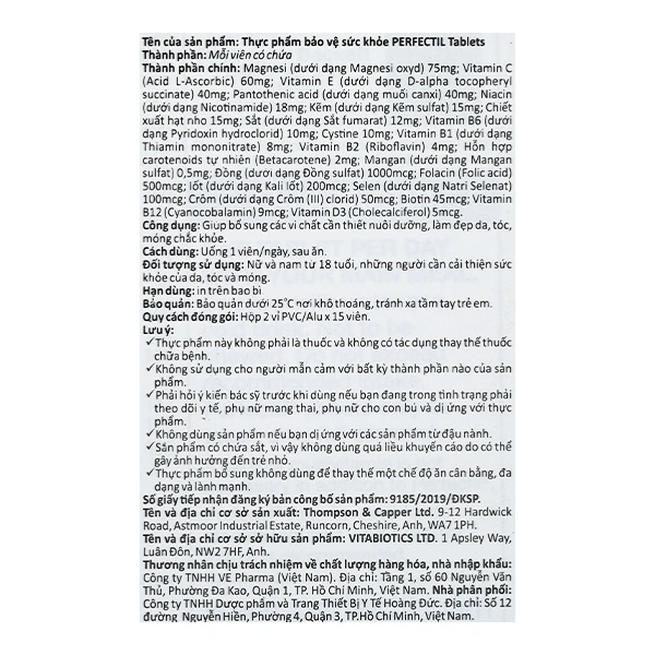 Mô tả sản phẩm về Vitabiotics Perfectil Skin