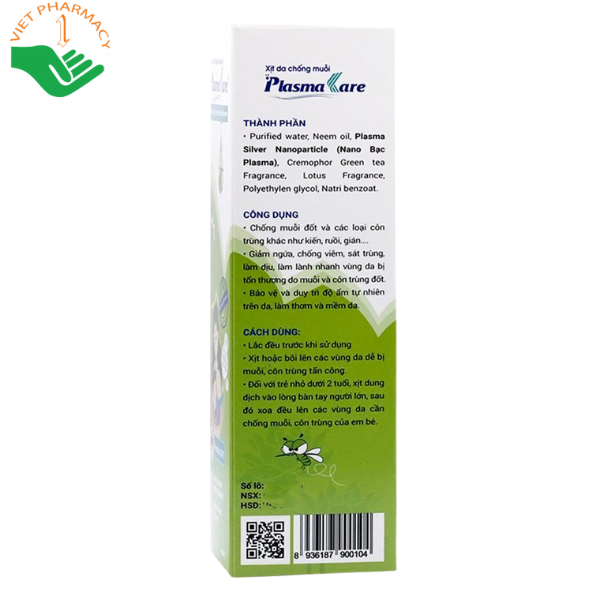 Xịt da chống muỗi PlasmaKare là sản phẩm thế hệ mới kết hợp giữa chiết xuất thiên nhiên an toàn và công nghệ plasma hoạt hóa, mang đến khả năng chống muỗi, kháng khuẩn và làm dịu da vượt trội. Chỉ với một lớp xịt mỏng, sản phẩm giúp ngăn muỗi và côn trùng tiếp xúc hoặc cắn da, đồng thời làm mát, giảm nhanh cảm giác ngứa rát, sưng đỏ khi bị đốt. Kết cấu sương mịn dễ thấm, không nhờn rít, thích hợp dùng hằng ngày cho cả trẻ nhỏ và người lớn.