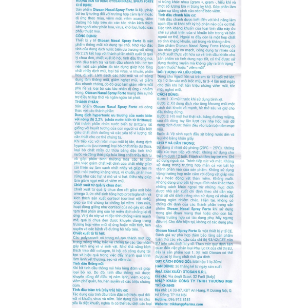 Dung dịch xịt mũi người lớn Otosan Nasal Spray Forte là liệu pháp bổ trợ đối với viêm mũi, viêm xoang, cảm lạnh, hậu phẫu.