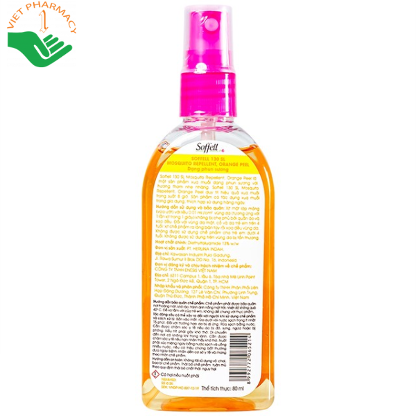 Soffell xịt chống muỗi hương cam 80ml duy trì hiệu quả xua muỗi trong suốt 8 giờ.