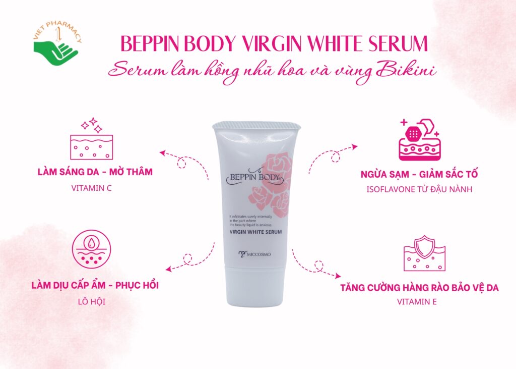 Trong số các thương hiệu chăm sóc da vùng nhạy cảm, thương hiệu Miccosmo (Nhật Bản) được đánh giá cao nhờ bề dày kinh nghiệm và uy tín quốc tế. Một trong những sản phẩm nổi bật của hãng là Beppin Body Virgin White Serum 30g – serum chuyên biệt cho vùng nhũ hoa và bikini.